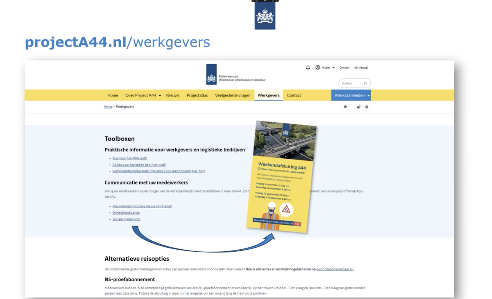 Om organisaties goed voor te bereiden op de werkzaamheden aan de a44 en de gevolgen voor bereikbaarheid, organiseren we op 17 oktober van 12.00 tot 13.00 uur een webinar.